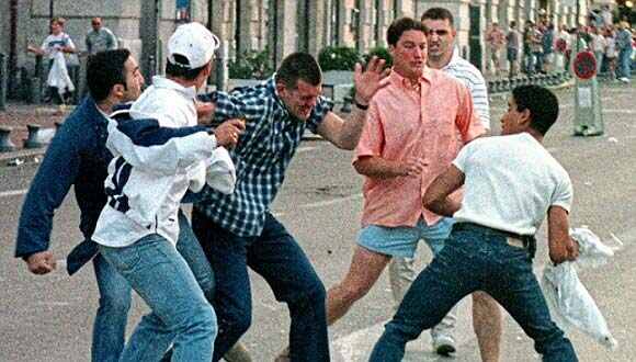 1998年法國(guó)世界杯,突尼斯和英格蘭球迷在馬賽混戰(zhàn)。